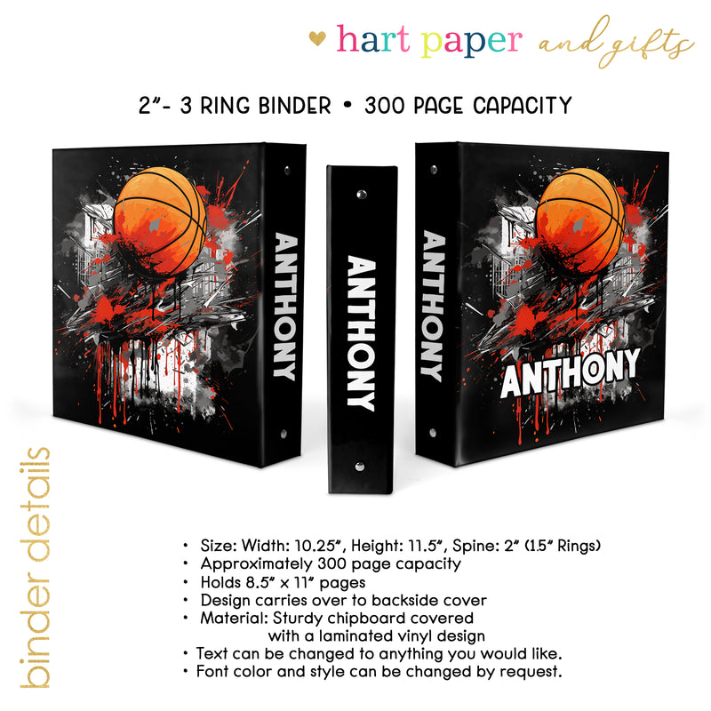 Basketball Sports Personalized Custom 2" 3 Ring Binder • School Office Supplies