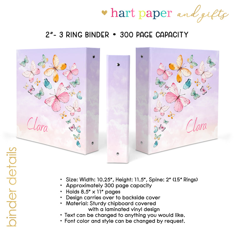 Butterfly Rainbow Personalized Custom 2" 3 Ring Binder • School Office Supplies