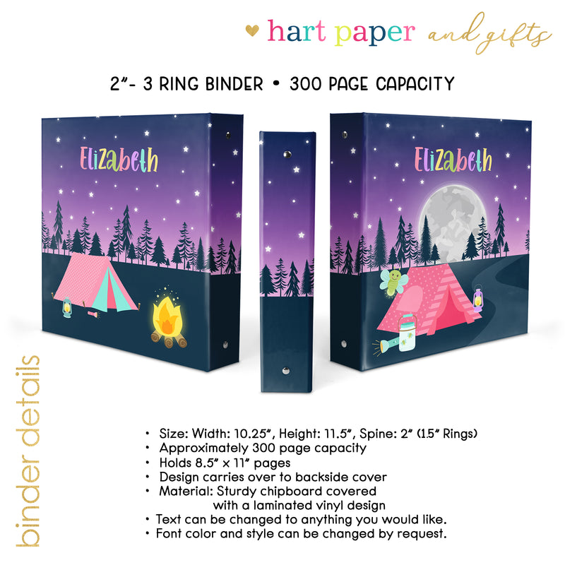 Camping Summer Camp Personalized Custom 2" 3 Ring Binder • School Office Supplies