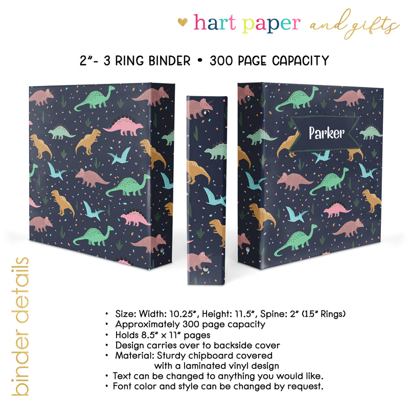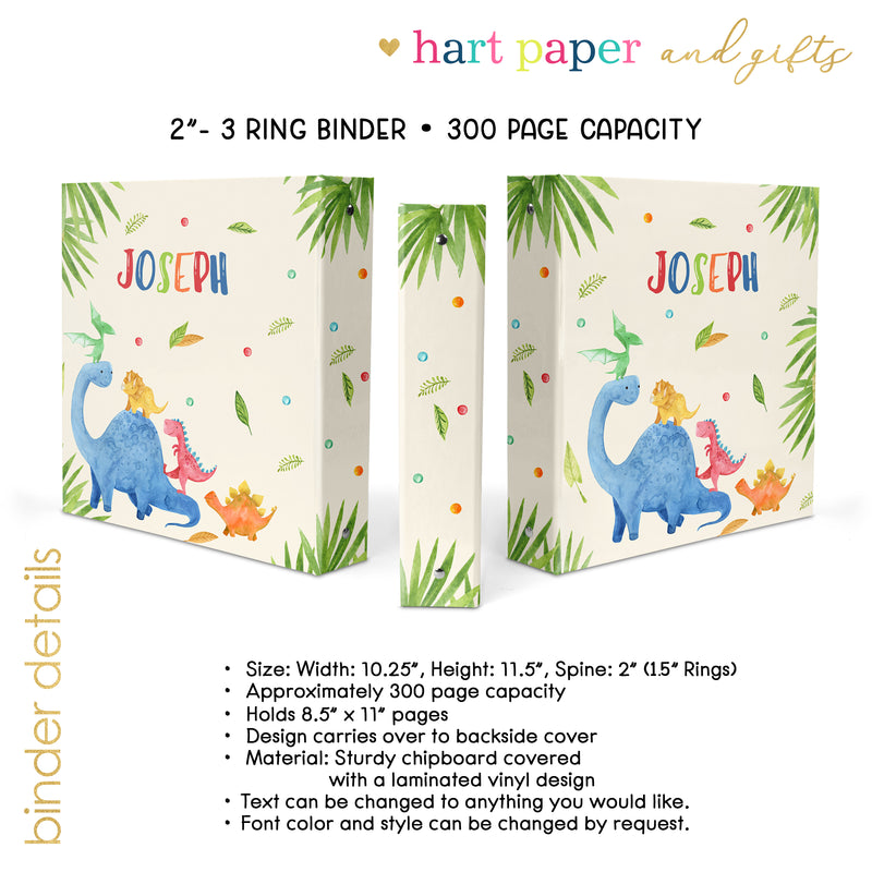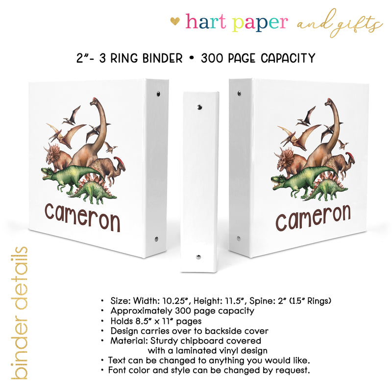 Dinosaur Personalized Custom 2" 3 Ring Binder • School Office Supplies