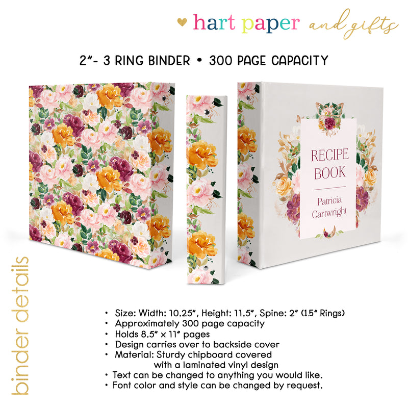 Warm Flowers Personalized Custom 2" 3 Ring Recipe Book Binder