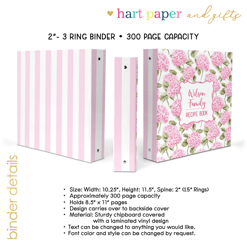 Pink Hydrangea Personalized Custom 2" 3 Ring Recipe Book Binder