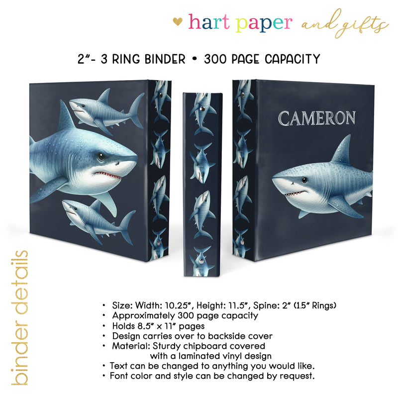 Shark Personalized Custom 2" 3 Ring Binder • School Office Supplies