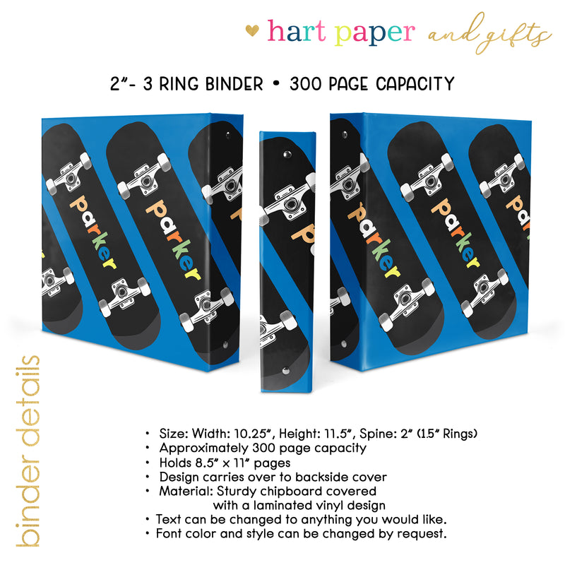 Skateboard Sports Personalized Custom 2" 3 Ring Binder • School Office Supplies