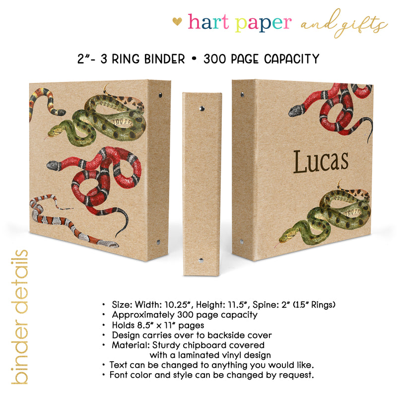 Snake Animal Personalized Custom 2" 3 Ring Binder • School Office Supplies