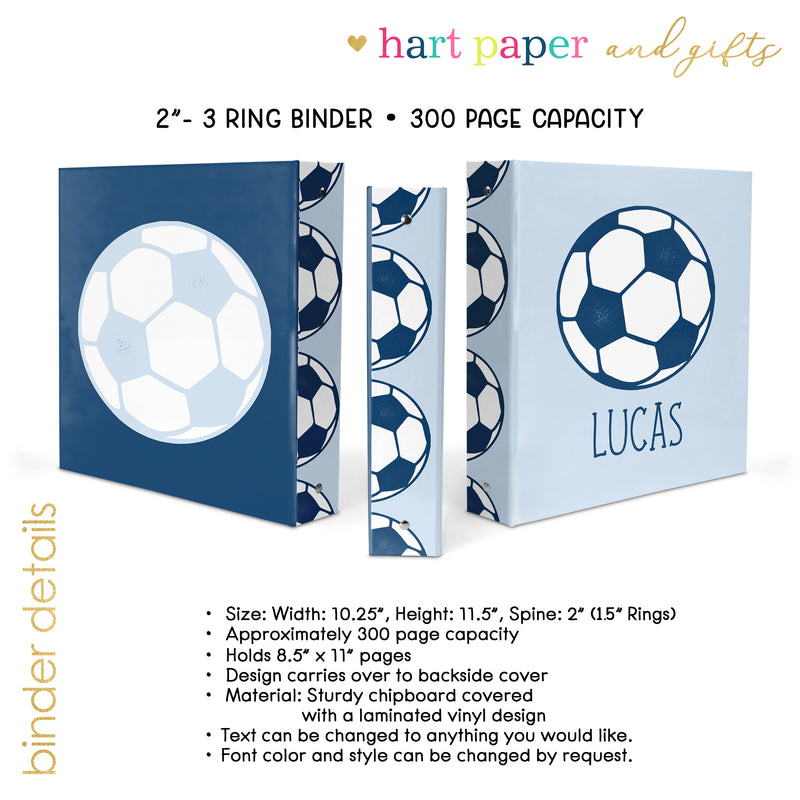 Soccer Sports Personalized Custom 2" 3 Ring Binder • School Office Supplies