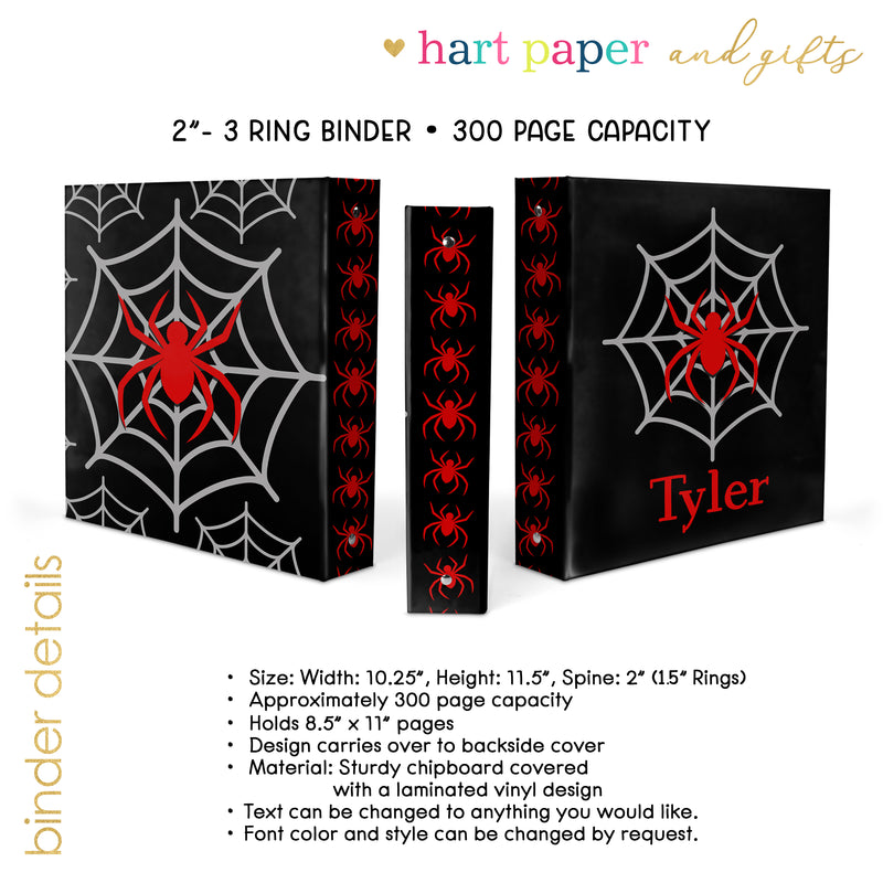 Spider Personalized Custom 2" 3 Ring Binder • School Office Supplies