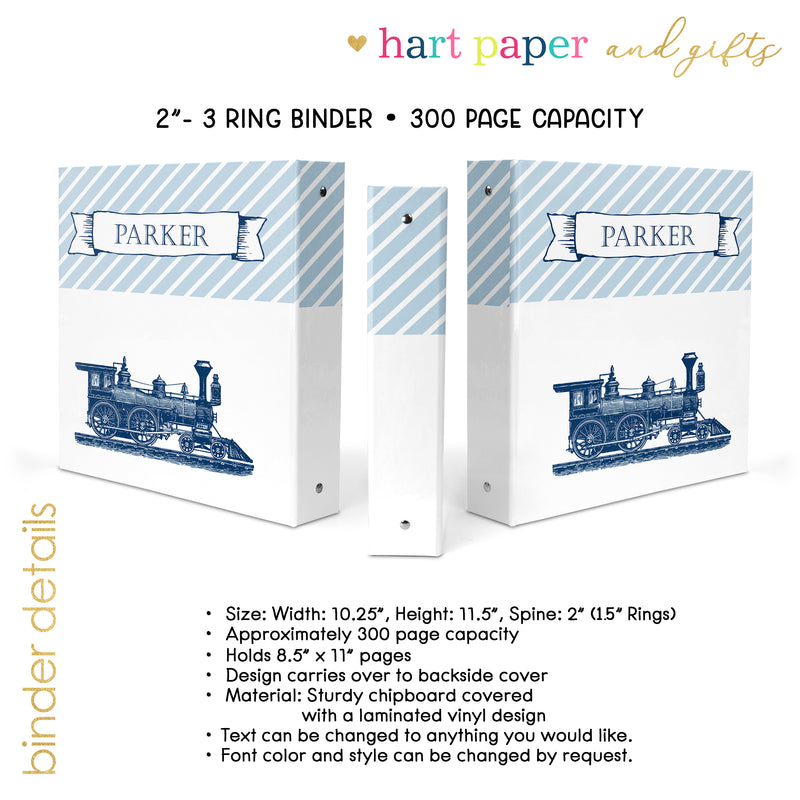 Train Personalized Custom 2" 3 Ring Binder • School Office Supplies