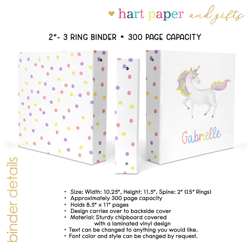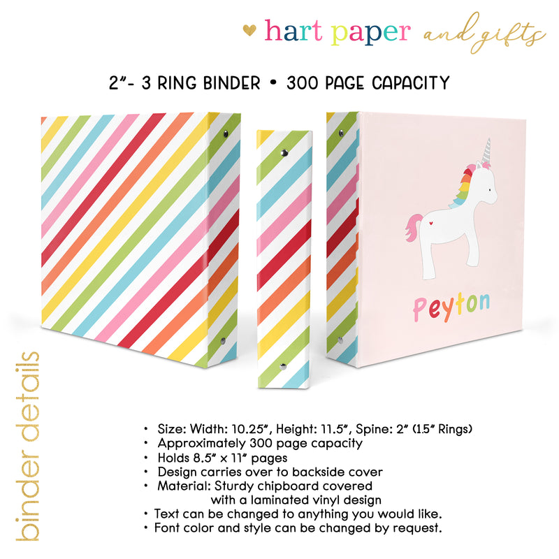 Unicorn Rainbow Personalized Custom 2" 3 Ring Binder • School Office Supplies