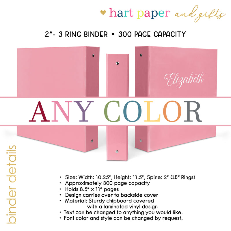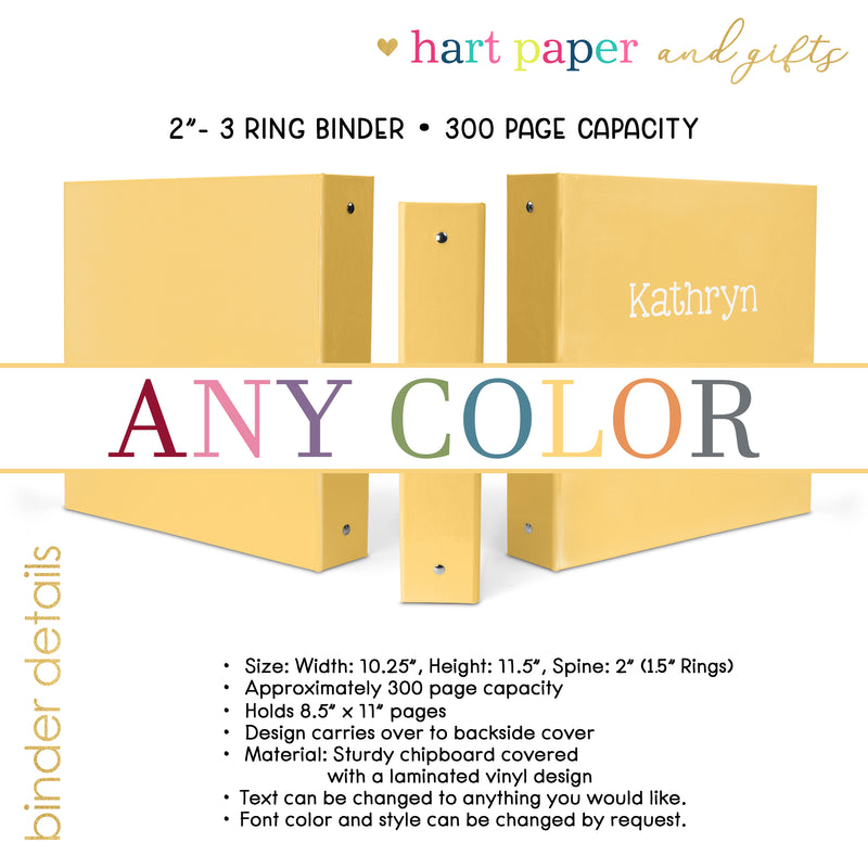 ANY Solid Color Personalized Custom 2" 3 Ring Binder • School Office Supplies