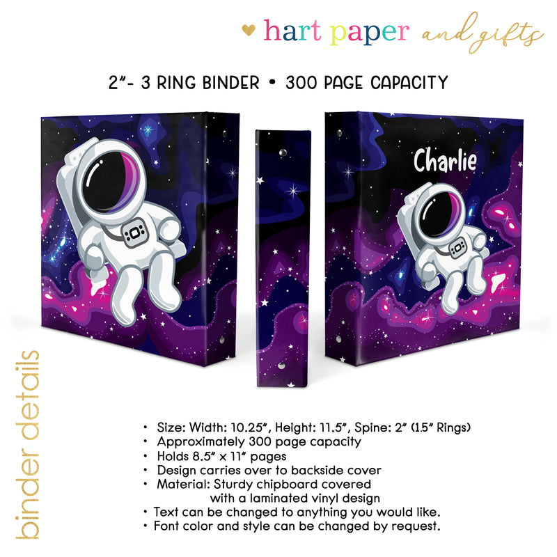 Astronaut Galaxy Personalized Custom 2" 3 Ring Binder • School Office Supplies
