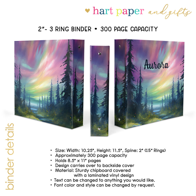 Auroral Borealis Personalized Custom 2" 3 Ring Binder • School Office Supplies