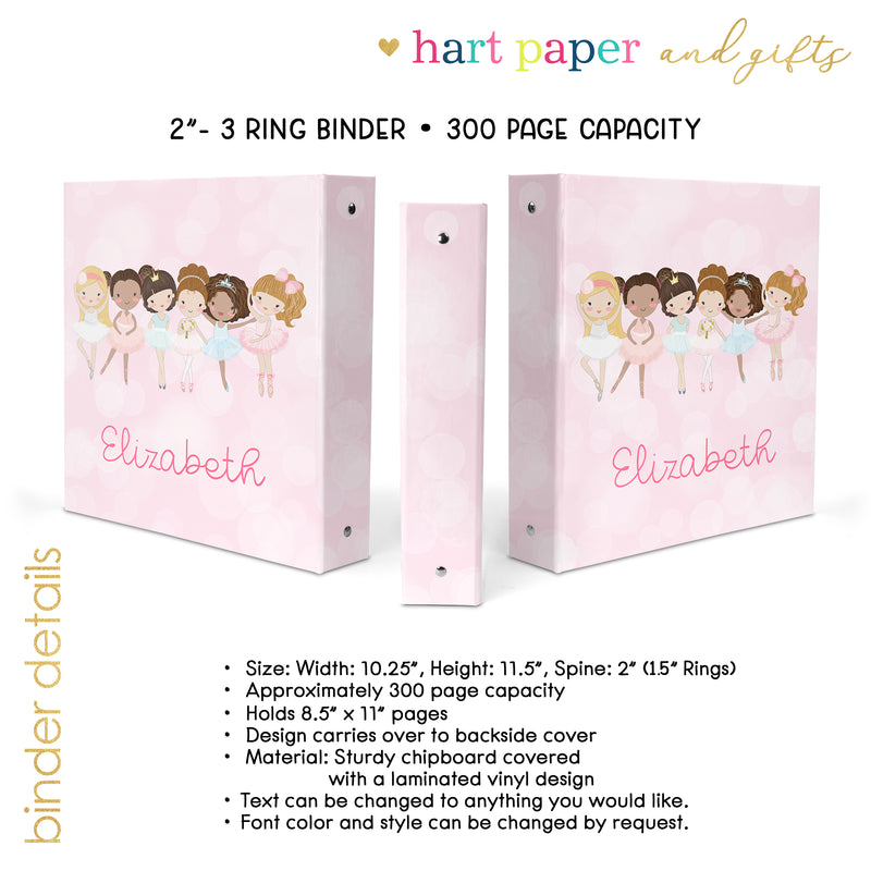 Ballerina Ballet Personalized Custom 2" 3 Ring Binder • School Office Supplies