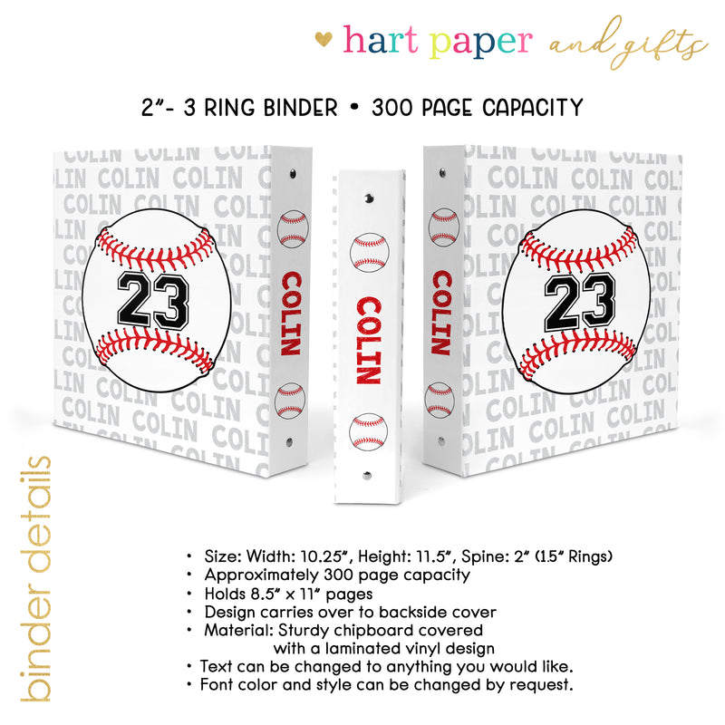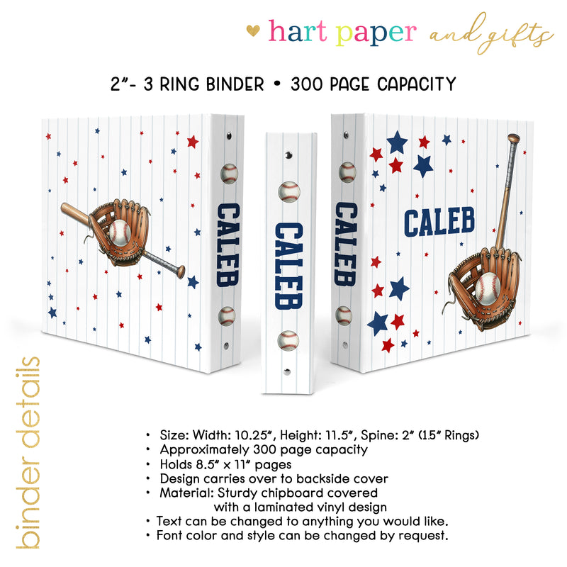 Baseball Sports Personalized Custom 2" 3 Ring Binder • School Office Supplies