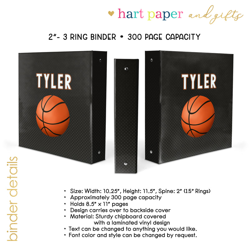 Basketball Sports Personalized Custom 2" 3 Ring Binder • School Office Supplies