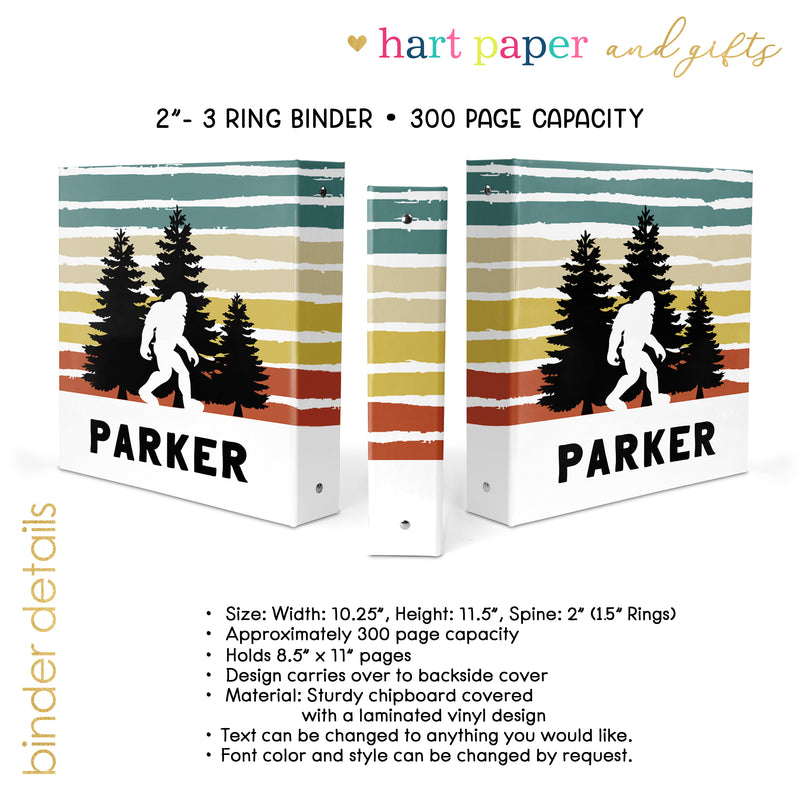 Bigfoot Camping Camp Personalized Custom 2" 3 Ring Binder • School Office Supplies