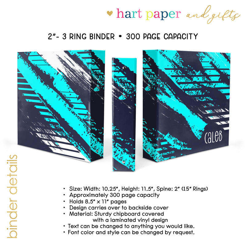 Our custom 3-ring binders are perfect for organizing schoolwork, home office papers, family recipes, keepsakes, and more. Each binder is personalized with a name or monogram and comes in a variety of fun and stylish designs for boys, girls, teens, and adults. Great for back-to-school supplies, teacher gifts, or holiday presents. Pair with our matching folders, clipboards, and notebooks for a complete personalized stationery set.