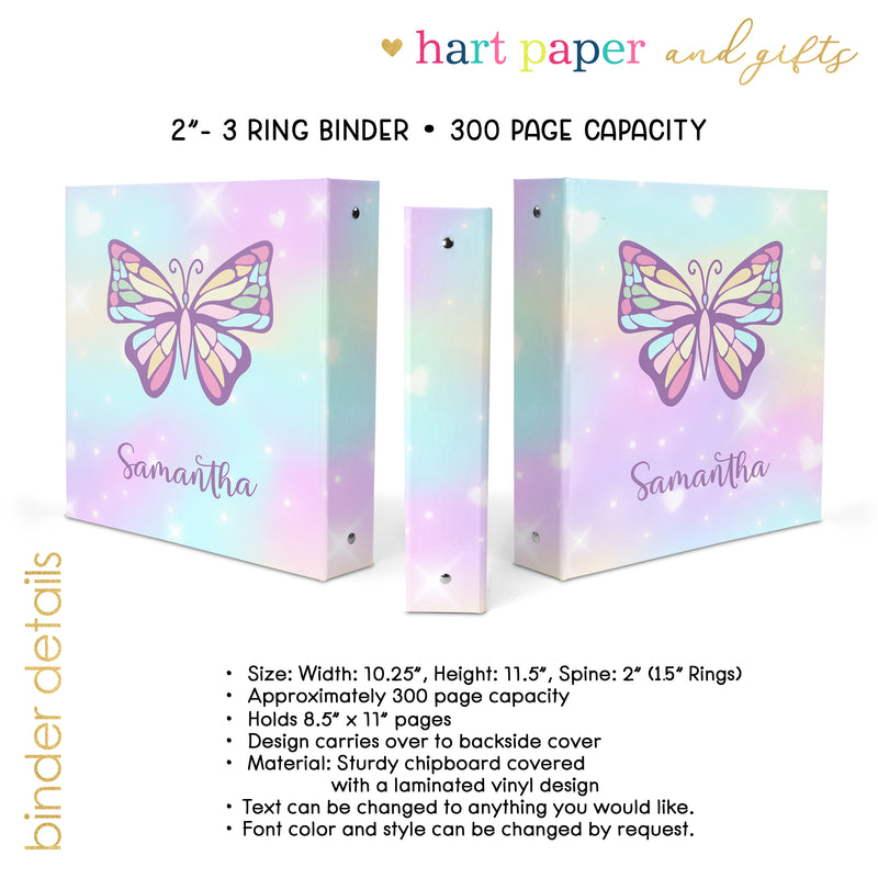 Butterfly Rainbow Personalized Custom 2" 3 Ring Binder • School Office Supplies