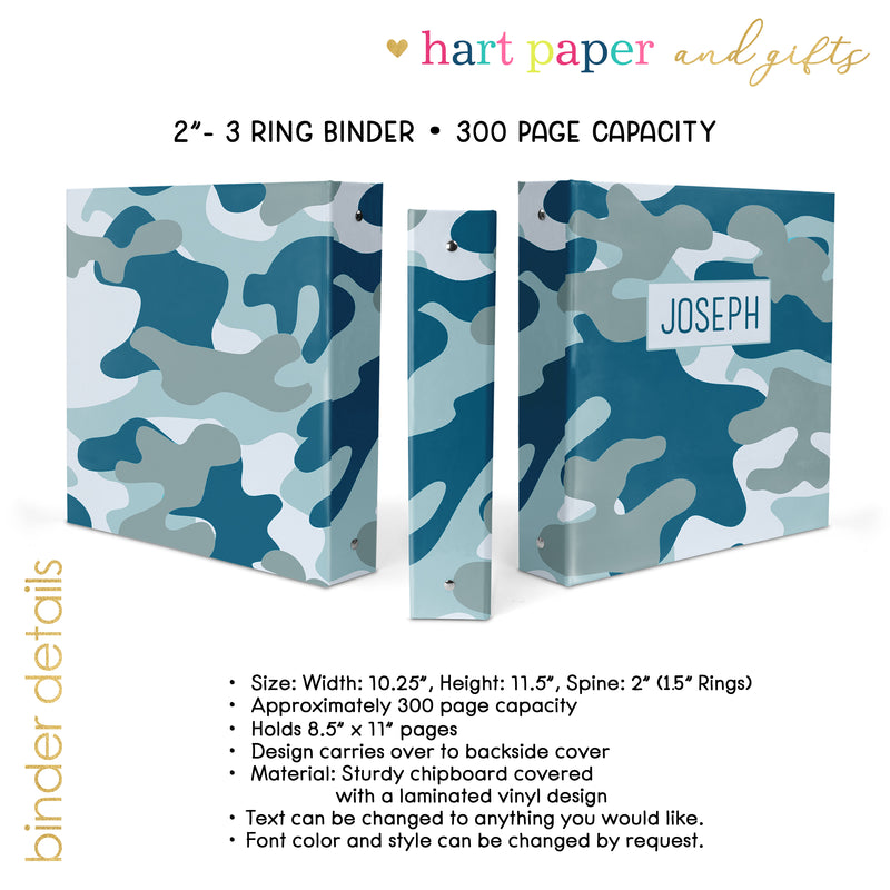 Camouflage Camo Personalized Custom 2" 3 Ring Binder • School Office Supplies