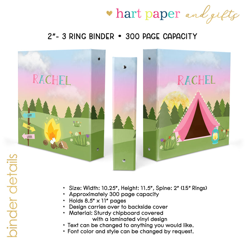 Camping Summer Camp Personalized Custom 2" 3 Ring Binder • School Office Supplies