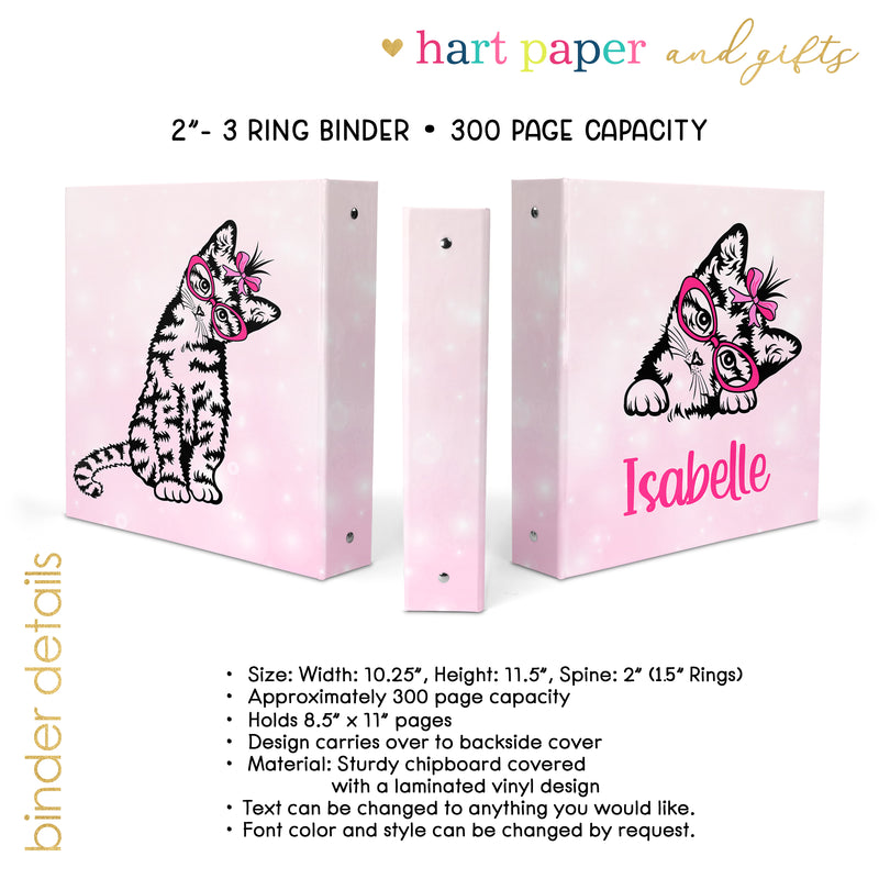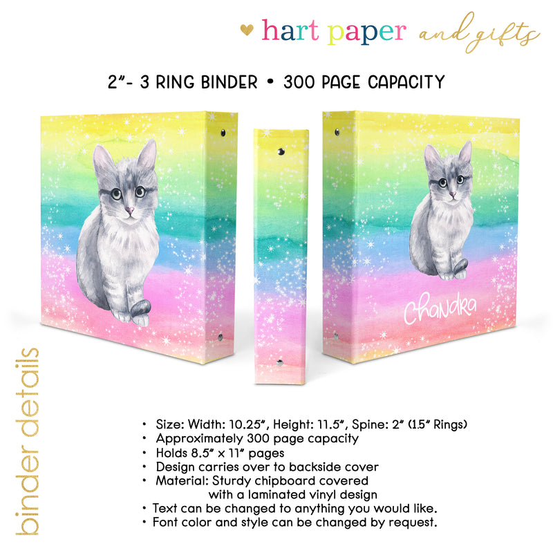 Cat Animals Personalized Custom 2" 3 Ring Binder • School Office Supplies