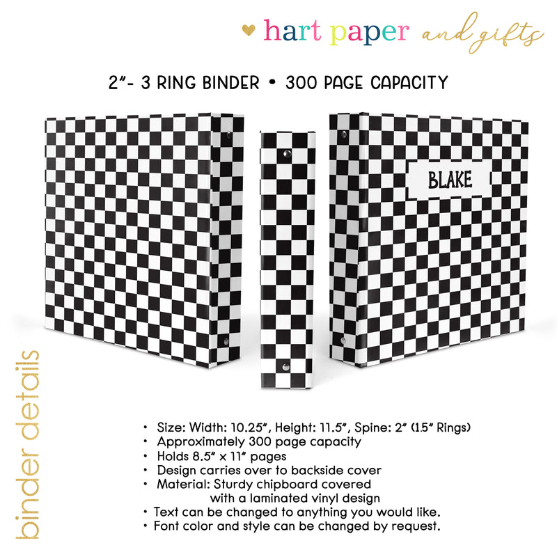 Black White Checks Personalized Custom 2" 3 Ring Binder • School Office Supplies