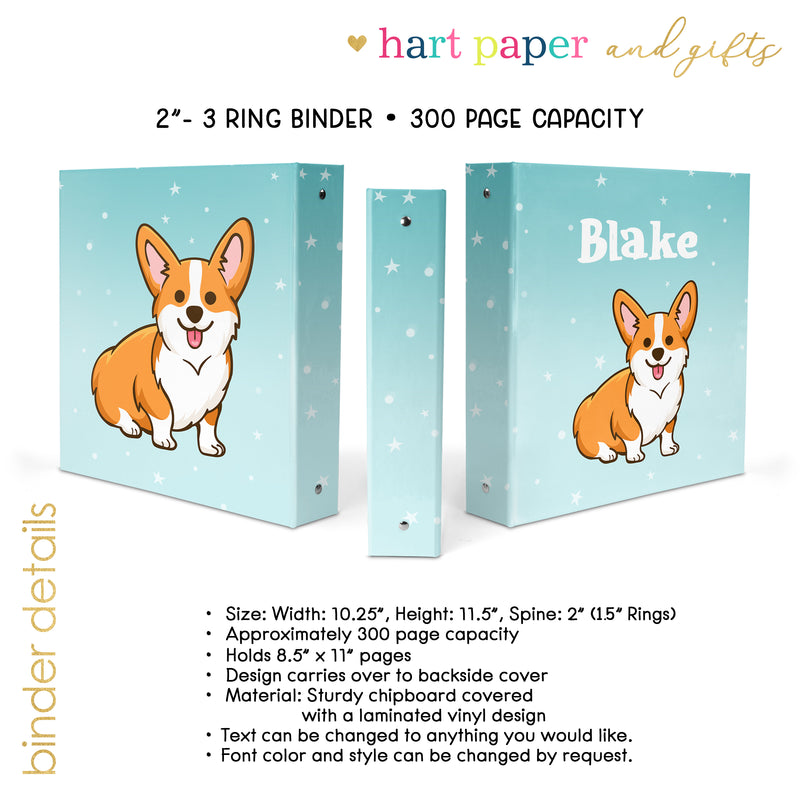 Corgi Dog Puppy Personalized Custom 2" 3 Ring Binder • School Office Supplies