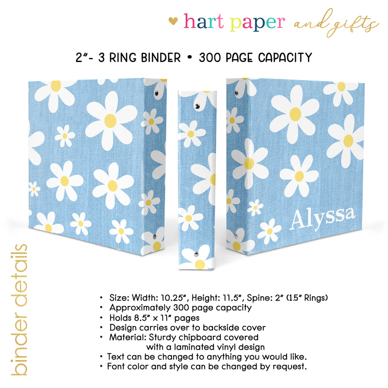 Daisy Flowers Personalized Custom 2" 3 Ring Binder • School Office Supplies