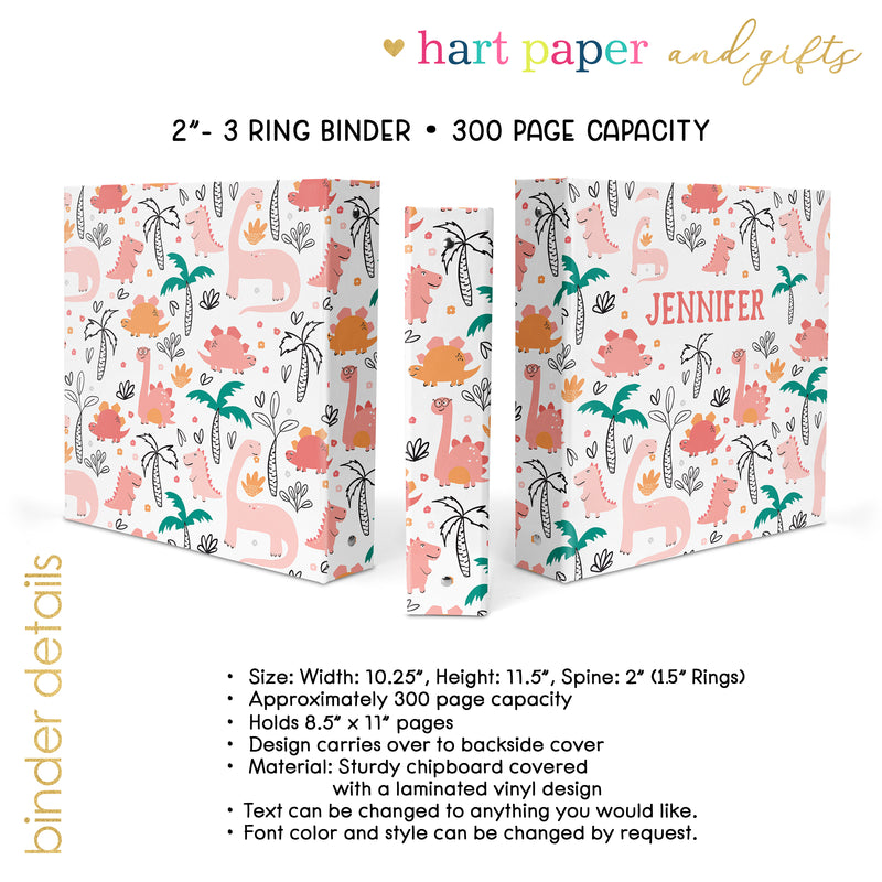 Dinosaur Personalized Custom 2" 3 Ring Binder • School Office Supplies
