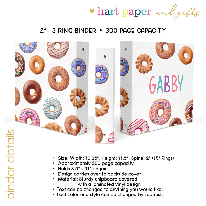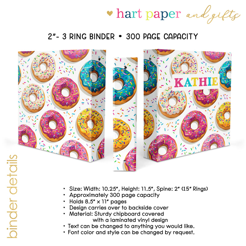 Doughnut Personalized Custom 2" 3 Ring Binder • School Office Supplies