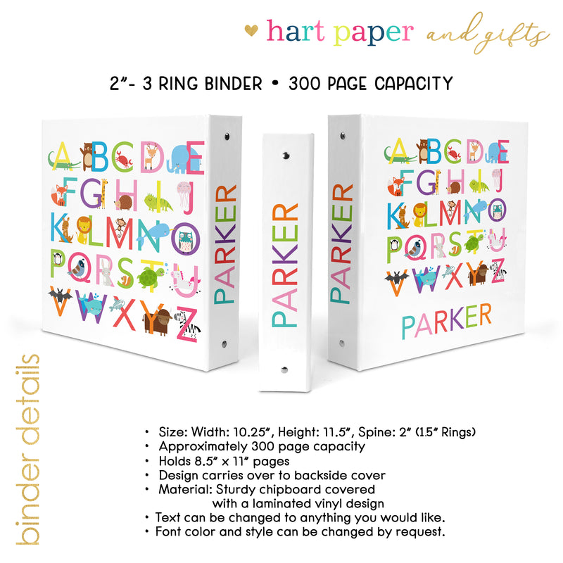 Alphabet Animals Personalized Custom 2" 3 Ring Binder • School Office Supplies