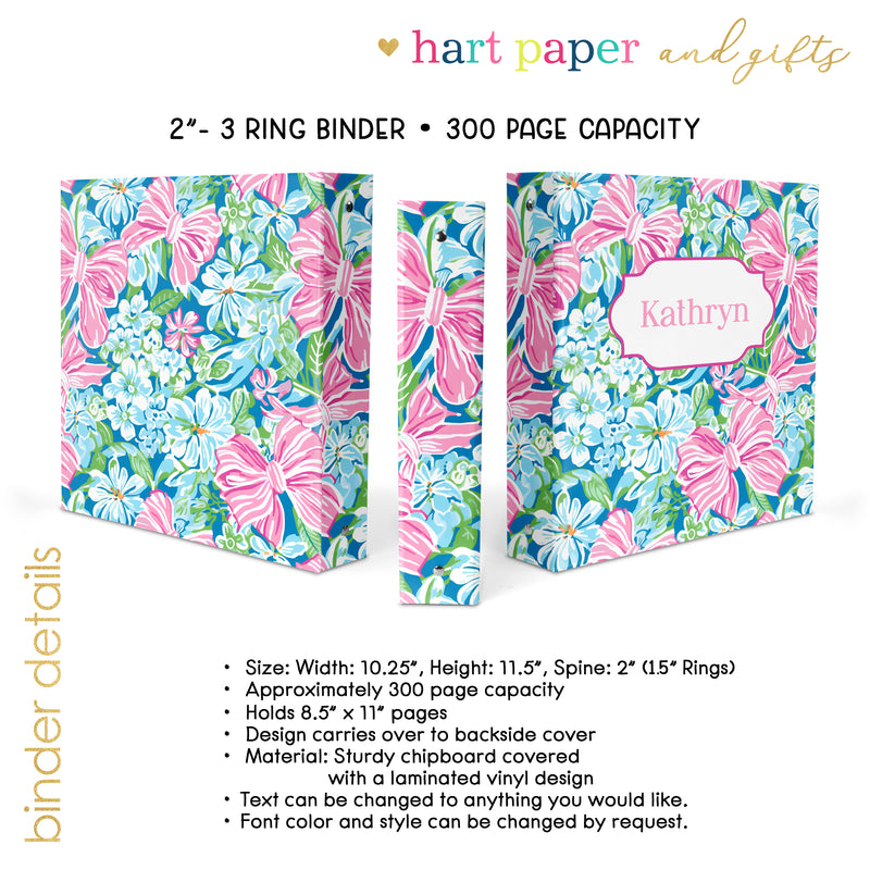 Preppy Flowers & Bows Personalized Custom 2" 3 Ring Binder • School Office Supplies