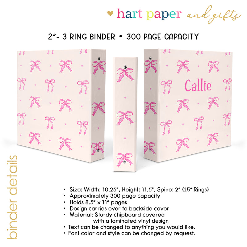 Pink Bow Coquette Personalized Custom 2" 3 Ring Binder • School Office Supplies