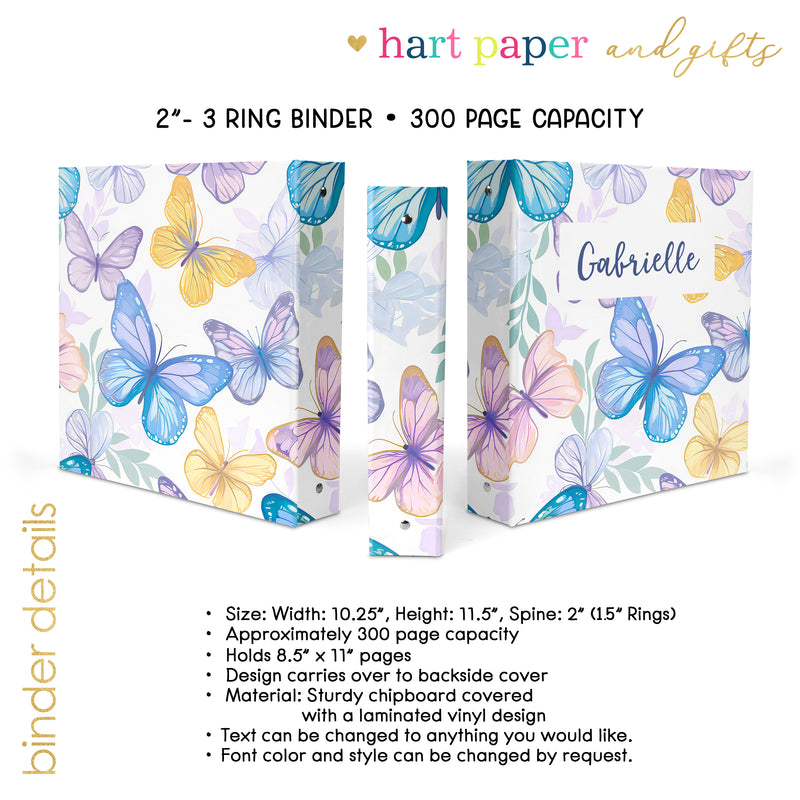 Butterfly Rainbow Personalized Custom 2" 3 Ring Binder • School Office Supplies