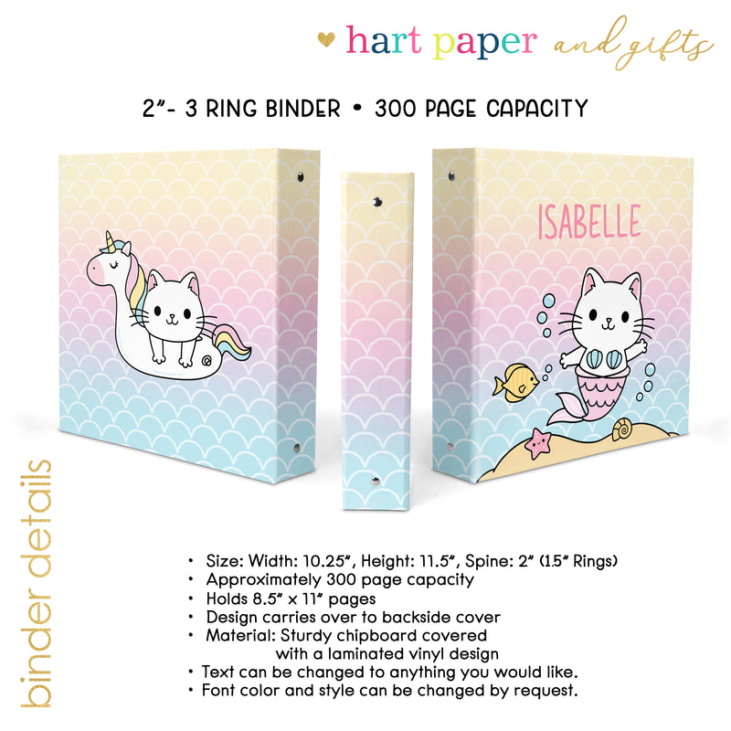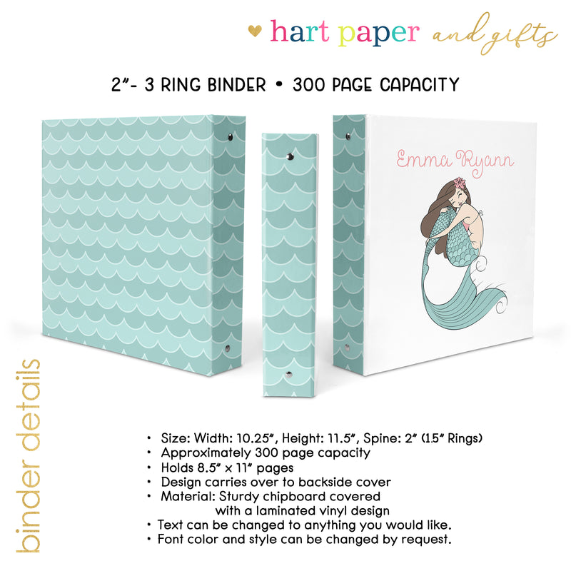 Mermaid Rainbow Personalized Custom 2" 3 Ring Binder • School Office Supplies