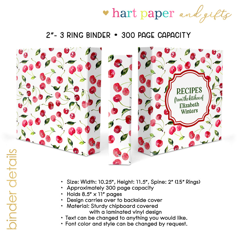 Cherry Cherries Personalized Custom 2" 3 Ring Recipe Book Binder