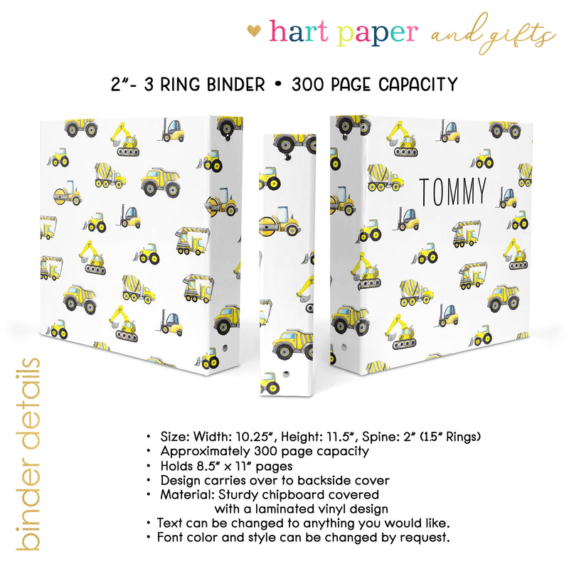Construction Personalized Custom 2" 3 Ring Binder • School Office Supplies