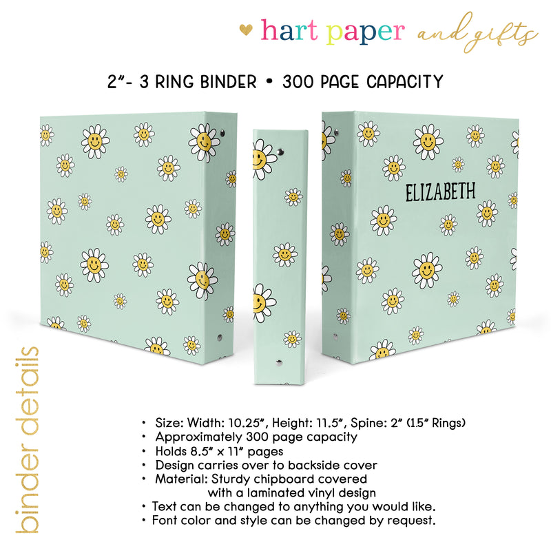 Daisy Flowers Personalized Custom 2" 3 Ring Binder • School Office Supplies