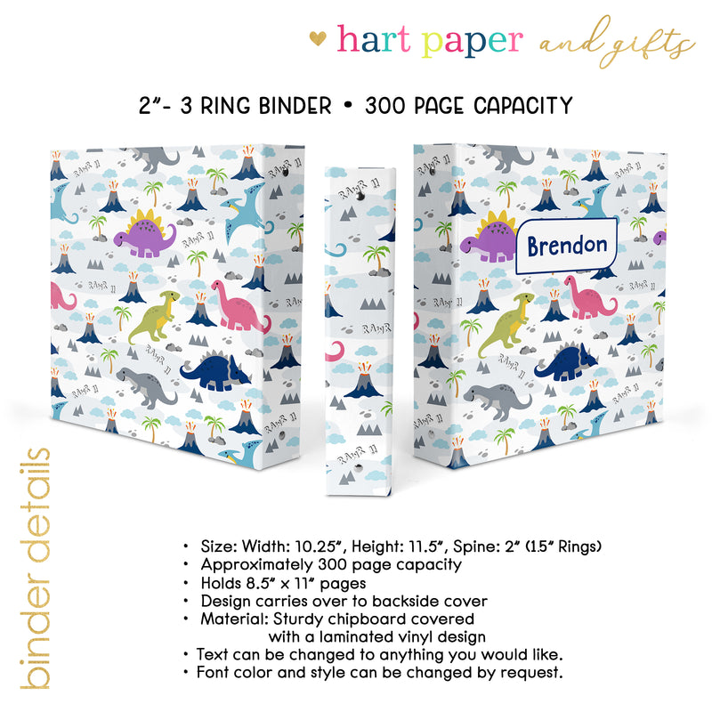Dinosaur Personalized Custom 2" 3 Ring Binder • School Office Supplies