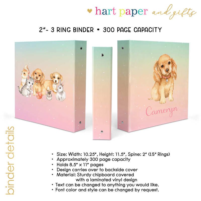 Dog Puppy Personalized Custom 2" 3 Ring Binder • School Office Supplies