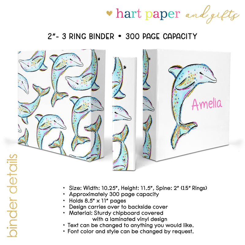 Dolphin Personalized Custom 2" 3 Ring Binder • School Office Supplies