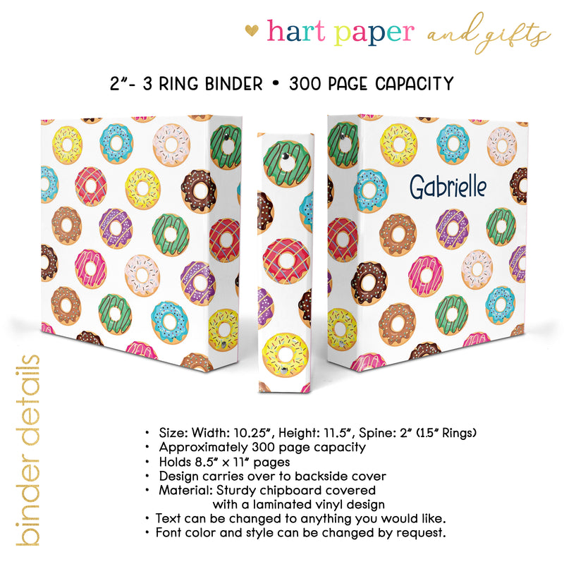 Doughnut Personalized Custom 2" 3 Ring Binder • School Office Supplies