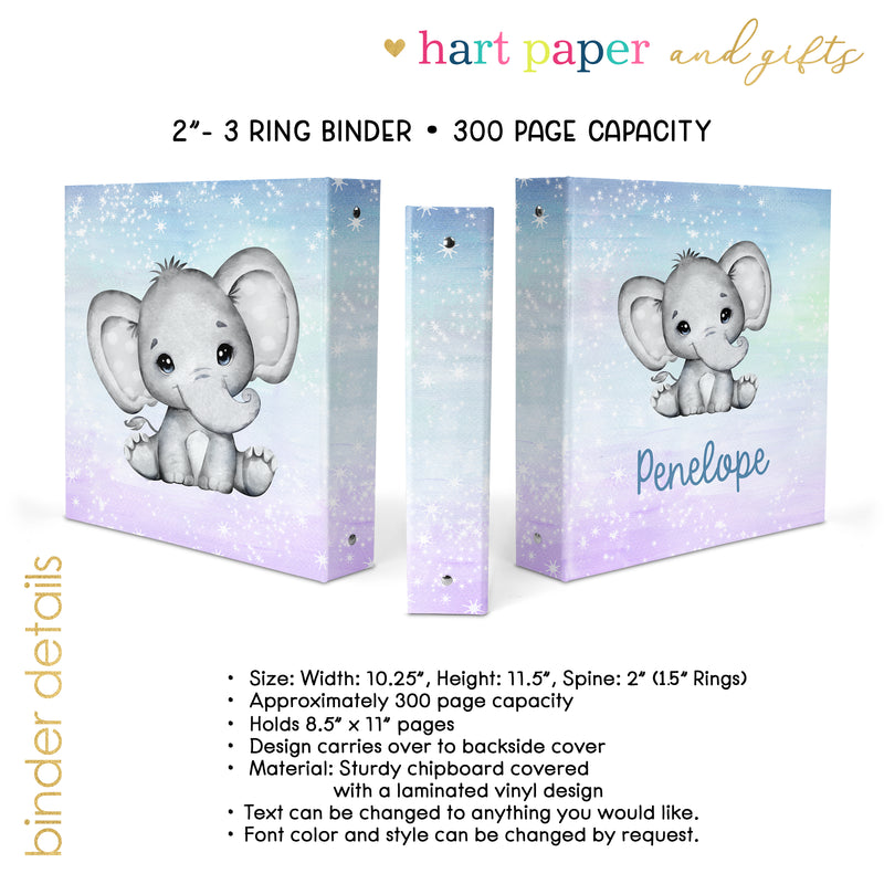 Elephant Personalized Custom 2" 3 Ring Binder • School Office Supplies