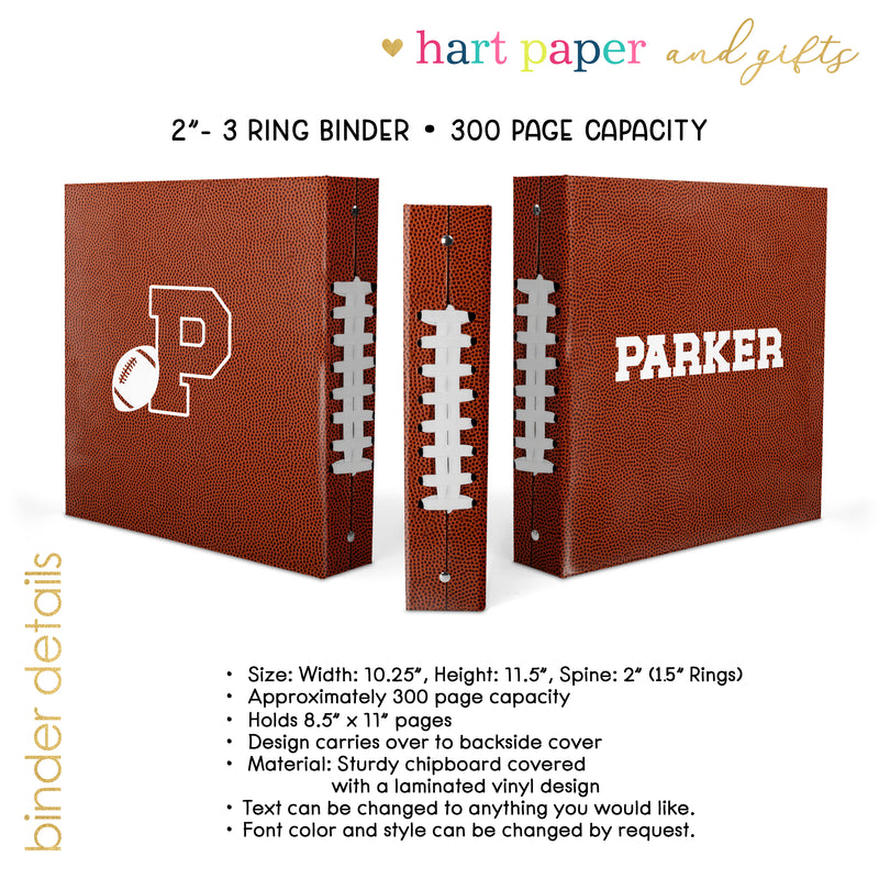 Football Sports Personalized Custom 2" 3 Ring Binder • School Office Supplies
