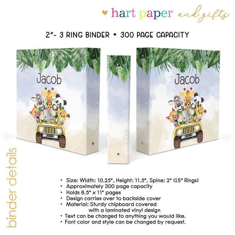 Jungle Safari Personalized Custom 2" 3 Ring Binder • School Office Supplies