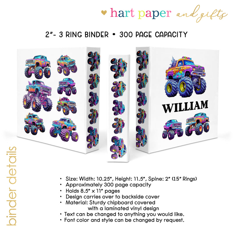 Monster Truck Personalized Custom 2" 3 Ring Binder • School Office Supplies