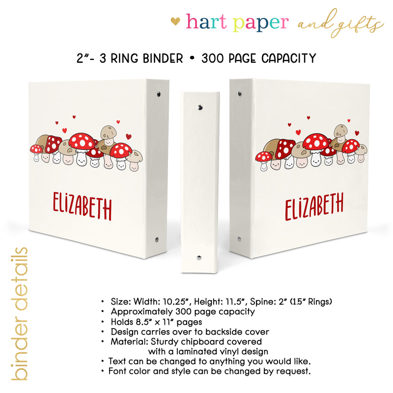 Mushroom Personalized Custom 2" 3 Ring Binder • School Office Supplies