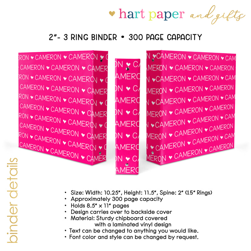 ANY COLOR Repeat Name Personalized Custom 2" 3 Ring Binder • School Office Supplies