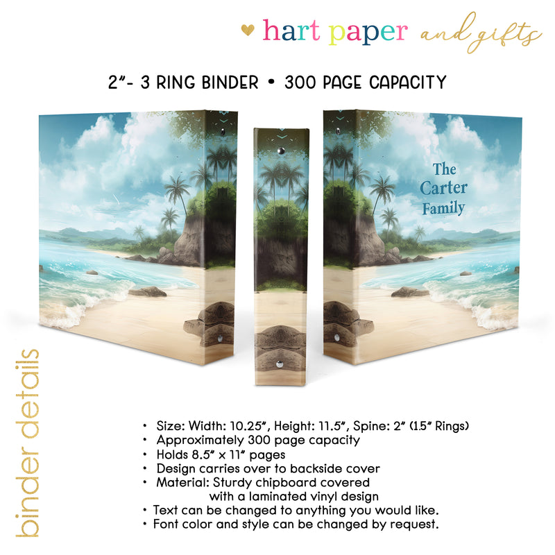 Beach Personalized Custom 2" 3 Ring Binder • School Office Supplies