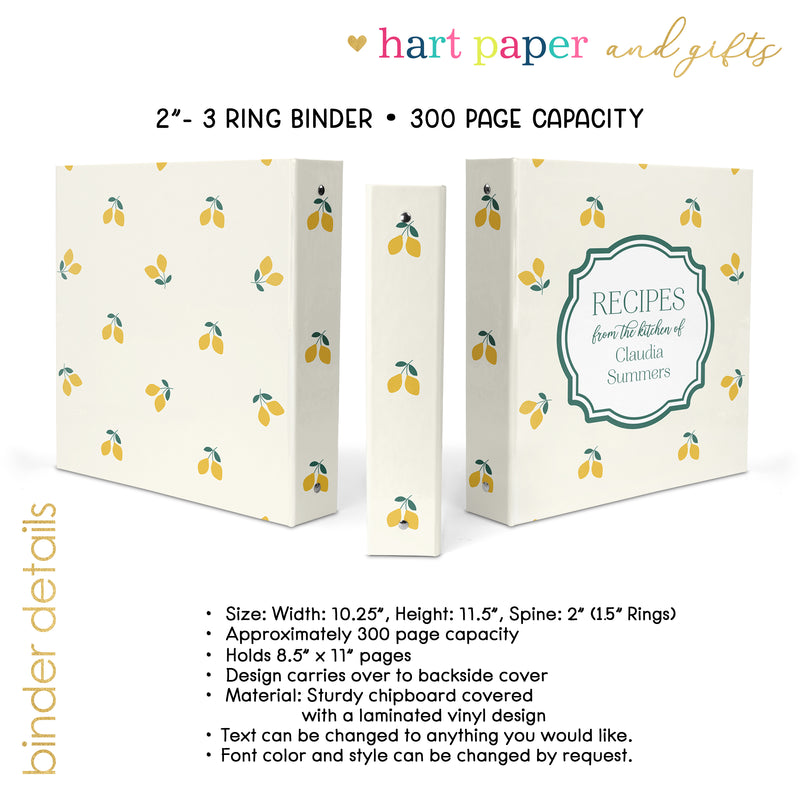 Lemon Personalized Custom 2" 3 Ring Recipe Book Binder